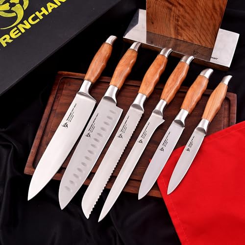 Premium Craftsmanship: This 6-piece chef knife set is meticulously handmade, featuring high-quality stainless steel blades and Olive wood handles for a luxurious feel.