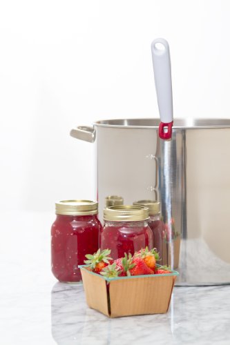 The Prepworks by Progressive Canning Scoop is designed with a unique angle shape that easily gets into the corners of a stock pot, eliminating the need for tools to scrape the bottom of the pot. Its large capacity scoop fills an entire 1/2 pint in 1 scoop and it pours from both sides for left or right handed use. The scoop measures 11-3/4-inch long by 3-3/4-inch wide and designed with a clip to keep the scoop from slipping into a pot. Made from high heat nylon, it withstands heat up to 400-degree, it won’t stain and is dishwasher safe.