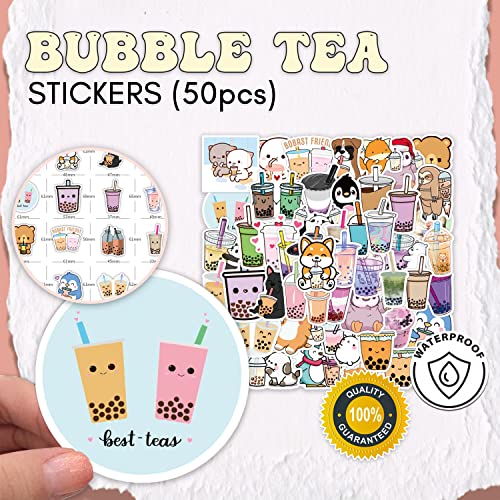 50 pcs bubble tea stickers: High-quality, waterproof pvc stickers that leave no traces. Perfect for decorating water bottles, bags, and phone cases.