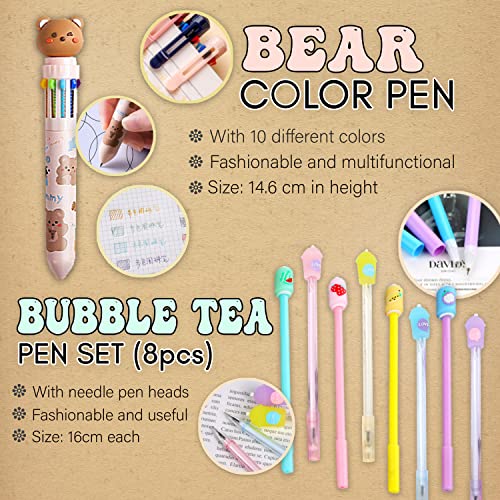 Bubble tea kawaii pens set: Includes 8 adorable pens, perfect for your pencil case. Inspires creativity, great for writing stories, poems, and notes.