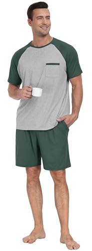 PrinStory Mens Pajama Set Summer Pjs Sleepwear Nightwear Lightweight Quick Dry Soft Short Sleeve Pjs Sleep Set With Pocket