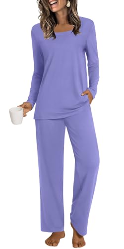 PrinStory Pajamas Set for Women Waffle Knit Lounge Set 2 Piece Outfits Loungewear Sweatsuit with Pockets