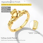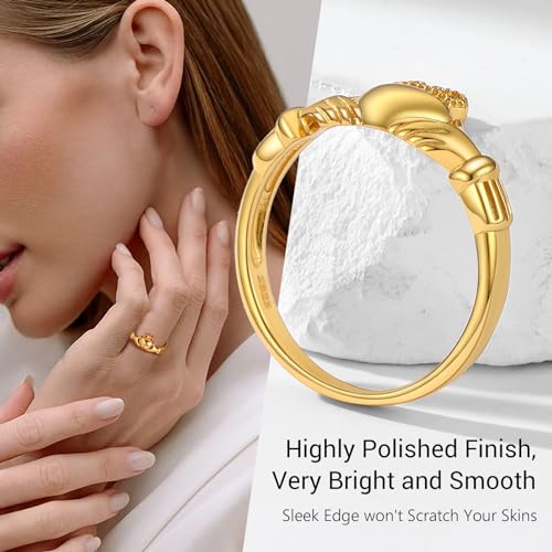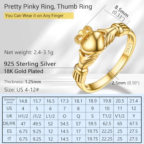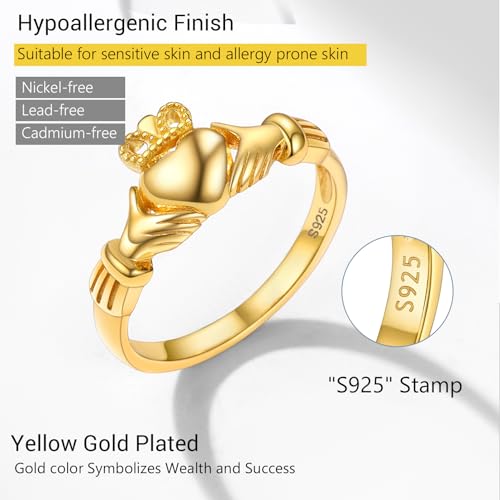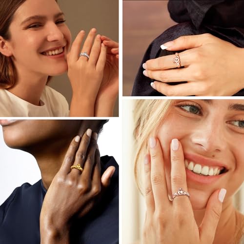 PROSILVER 925 Sterling Silver Claddagh Ring/Celtic Knot Ring for Women, Irish Wedding Band, Rose Gold Plated/Gold Plated, Size 4-12, Come with Box