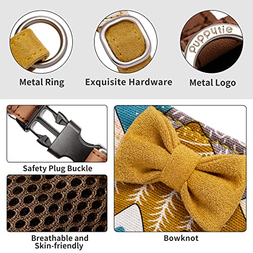 Puppytie No Pull Small Dog Harness with Multifunction Dog Leash,Lightweight Soft Adjustable No Choke Escape Proof Pet Harness Vest Pet Harness Vest,Suede Bow Brown,S