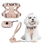 Home Pet Supplies Harnesses PUPTECK No Pull Dog Harness and Leash Set Reflective No Choke Step in Puppy Halter for XS Small and Medium Sized Dogs, Beige, Printed Fabric, S