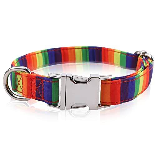 Rainbow Dog Collar, Pride Dog Collar with Metal Safety Buckle, Adjustable Soft LGBTQ Flag Puppy Collar, Detachable LGBT Custom Pet Collar with Rainbow Stripe for Small Medium Large Dogs $11.99