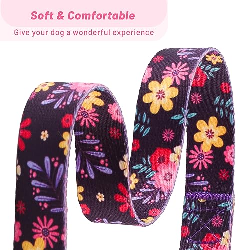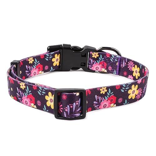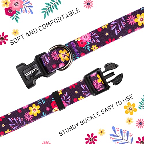 Home Pet Supplies Collars QQPETS Adjustable Soft Dog Collar: Print Flower Pink Multicolor Cute Patterns for XS Small Medium Large Pet Girl Boy Puppy Walking Running Training (S, Elegant Purple)