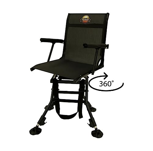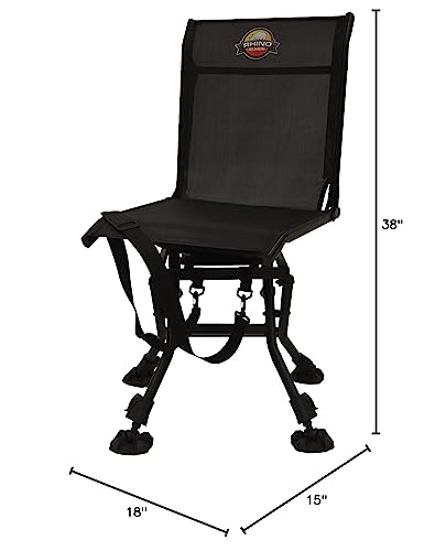 The Rhino Outdoors RC-009 Deluxe Hunting Chair features a 360° swivel seat with arm rests so you can easily see your surroundings while comfortably sitting down. Durable textilene material allows this chair to be used outside regardless of conditions and provides you a comfortable place to sit for extended time periods of time. All 4 legs feature large, sink-proof feet that adjust separately to give you better stability on uneven terrain. Easily collapse this chair and use the included shoulder strap to transport it anywhere you want.