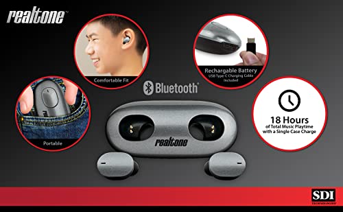 Realtone Bluetooth Earbuds with Microphone, Wireless Earbuds with Charging Case for Ear Buds, Designed for School, Home, or Travel
