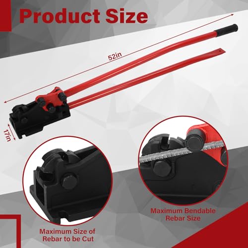 Size: Approximately 52 inches long, can bend/cut up to 5/8 inch rebar, weighs 37.5 pounds