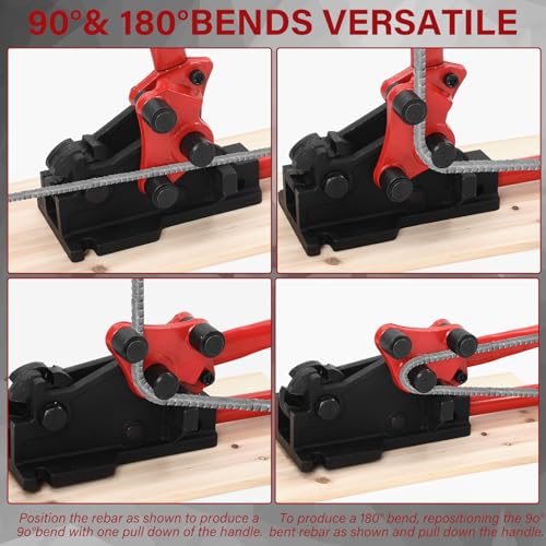 Sturdy and Durable: Constructed from robust chrome-vanadium steel, the rebar bender undergoes heat treatment. The cutting blades are forged from high-quality alloy steel, ensuring durability for heavy-duty use. It provides long-lasting reliability, serving you well over an extended period and saving additional costs