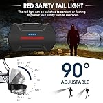Adjustable Headband , 12 Lighting Modes , White Light & Red Light , 90°Pivotable Head , Red Safety Warning Light |