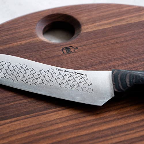 Unique Design: The chefs knife has beautiful Seljuk star motifs on the blade to give it a sense of traditionality. Also, they minimize the stickiness caused by surface tension