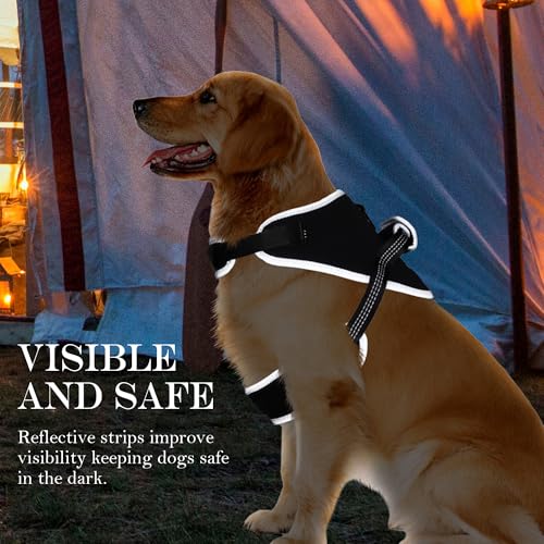 Reflective No Pull Dog Harness for Large Dogs, Easy Control Dog Vest Harness, Breathable Mesh Harness, Comfortable and Adjustable, Metal Ring and Control Handle, Black L