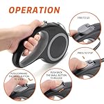 Retractable Dog Leash, 16 FT Dog Leash Retractable for Small/Medium/Large Dogs up to 55 lbs, Strong Nylon Tape, Tangle Free, One-Hand Brake (Black+Grey, 16 FT)