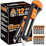REXBETI 12-Pack Utility Knife, Retractable Box Cutter for Cartons, Cardboard and Boxes, 18mm Wider Razor Sharp Blade, Smooth Mechanism, Perfect for Office and Home use