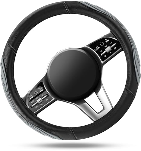 Road Comforts Car Steering Wheel Cover – Microfiber Leather Steering Wheel Wrap Sports 14.5-15 Inch Steering Wheel Cover Non-Slip for Men Women Grey Color