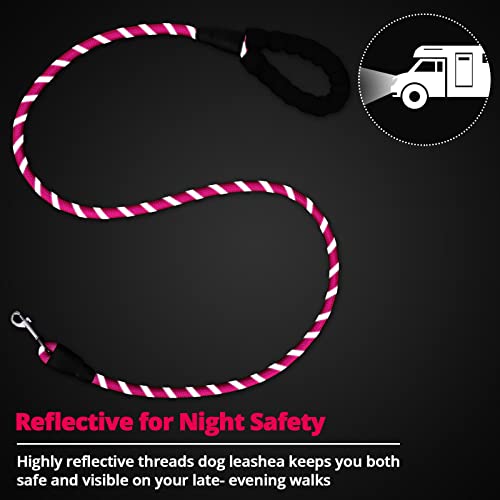Rope Dog Leash 5 FT: Heavy Duty Leashes with Swivel Lockable Hook Reflective Threads Bungee and Padded Handle – Dog Lead for Large Small Medium Dogs Outside Walking Hiking Pink