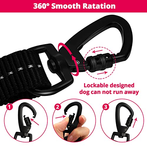 Upgraded 360°Swivel Lockable Hook:The new design 360°swivel clips clasp are made of strong zinc alloy, rust-proof and durable. the same material used and trusted by climbers and gives you peace of mind.Professional Swivel clasp prevents the large dog leash from twisting and dog getting tangled,Let your dog run freely