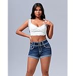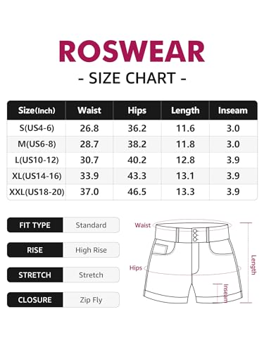 roswear Women’s High Waisted Stretchy Denim Shorts Cuffed Jean Shorts