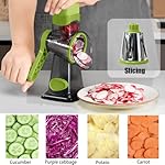 Home Small Kitchen Appliances Slicers, & Mandolins. Rotary Cheese Grater Shredder with Handle Handheld Round Mandoline Vegetable Slicer Carrot Shredder Nut Grinder with 3 Replaceable Stainless Steel Drum Blades and Upgrade Strong Suction, Grey/Green