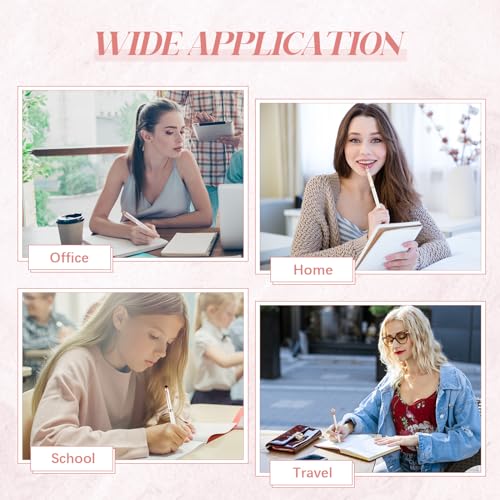 Sizes and Functions: our pen holder measures a proper size, which can hold many pens, pencils or makeup brushes to keep everything organized and dress up your desk; Pens measures around 14.5 x 1 cm/ 5.7 x 0.4 inches, the fine point tips provide define lines and reduce skipping when writing; These fancy pens for women write smoothly, and the black ink penetrate the paper easily, providing with a comfortable writing experience
