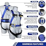 • 🧰UPGRADE ACCESSORIES:Our 4 point adjustment full body harness is international version which is signed according to the highest standards in world.It adds many safe and practical accessories: this harness has as many as 4 adjustm-ent points; shoulder load-bearing loops allow you to enhance suspension protection in tight spaces; the waist of the harness has durable side D-rings can be used in work positioning to and store more spare hooks!