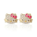 Home Jewelry Earrings SALLY ROSE Pave Crystal Hello Kitty Earrings for Women Official License, Gold Tone and Enamel Dangle or Stud Earrings, Sanrio Jewelry