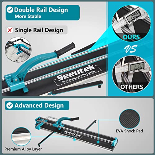 Seeutek Tile Cutter, 48 inch Professional Manual Porcelain Ceramic Tile Cutter, Double Rails Design Tile Cutter Tool, with Tungsten Carbide Cutting Wheel and Laser Positioning