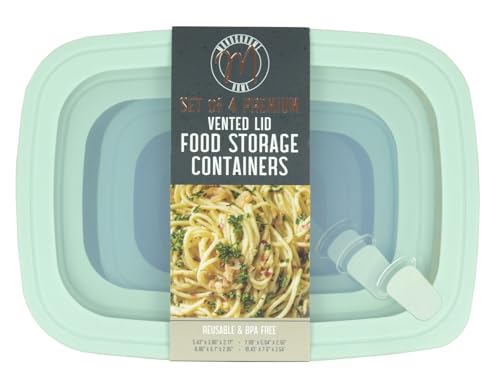 VERSATILE FOOD STORAGE: Set of 4 reusable food storage containers with vented lids designed for storing leftovers, fruits, vegetables, grains, rice, cereals, and more. Ideal for meal prep and maintaining food freshness.