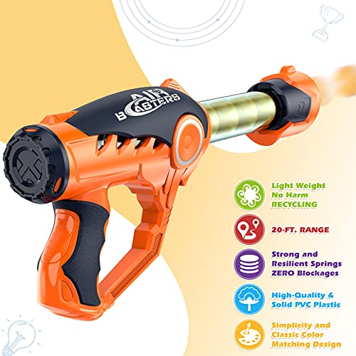 PROMOTES STEM LEARNING IN GAMES – Raising smarter, healthier, happier kids. Get kids interested in STEM subjects. Shooting Air Toys demonstrates force, trajectory, and the power of science. At the same time it can provide kids with exercise opportunities, effectively promote visual development, hand-eye coordination ability. It’s a great birthday gift idea for Kids age 6 7 8 9 10 11 12+. Ideal party favor and all kinds of the festival (Halloween Gifts, Christmas, Thanksgiving, New Year).