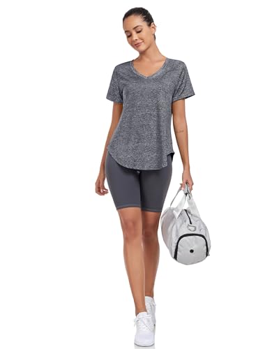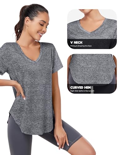 Short Sleeve Workout Shirts Women Loose Fit, V-Neck Women Exercise T-Shirt Workout Top, Dry Fit Yoga Gym Sport Tops