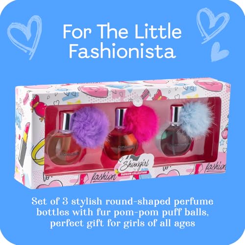 Showgirl Perfume Set for Teen Girls, Kids Body Spray for Girls 10-12 & Teens, Body Mist for Teenage Girl, Fashion Collection 3 Perfumes with Puff Balls