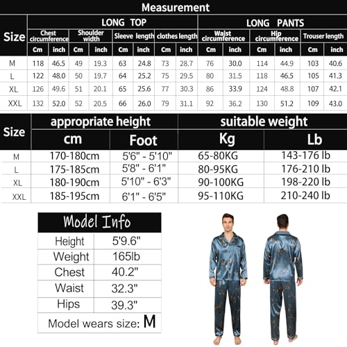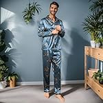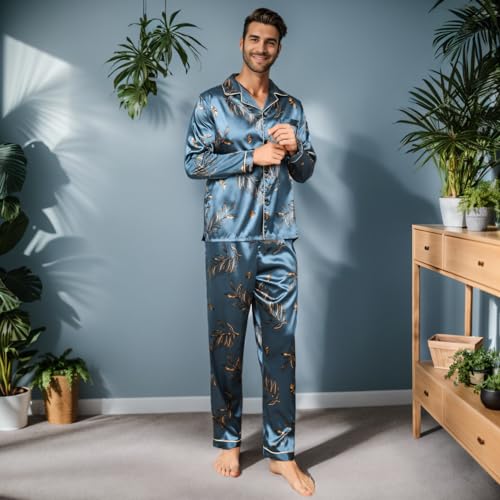 ShuiGod-Mens Silky Satin Pajamas Set Long Sleeve Top and Long pants Nightwear Button-Down Pj Sets Sleepwear