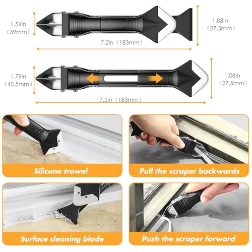 FOLAI Caulking Tools is made of high-quality stainless steel metal head and plastic material, which is silky smooth, durable, strong, rust-proof and corrosion-resistant. Using our caulking removal tool, it is easy to remove old caulking and apply new ones. Will not cause scratches/any damage to the wall