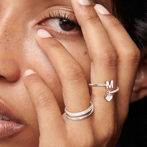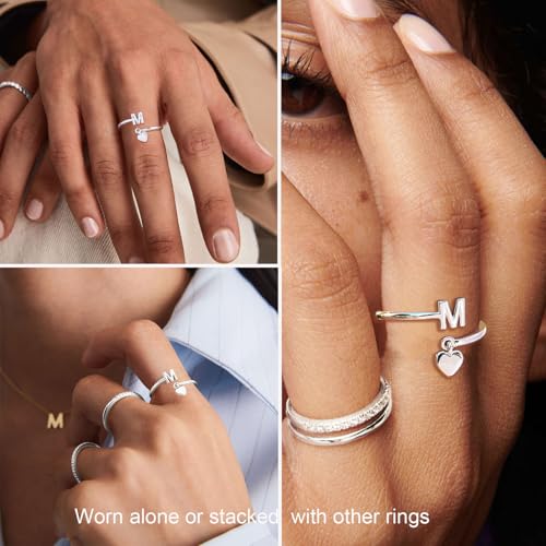 Silver Initial Rings for Women Non Tarnish Thumb Rings Sterling Silver Plated Adjustable Rings for Women Stackable Heart Ring letter rings for women