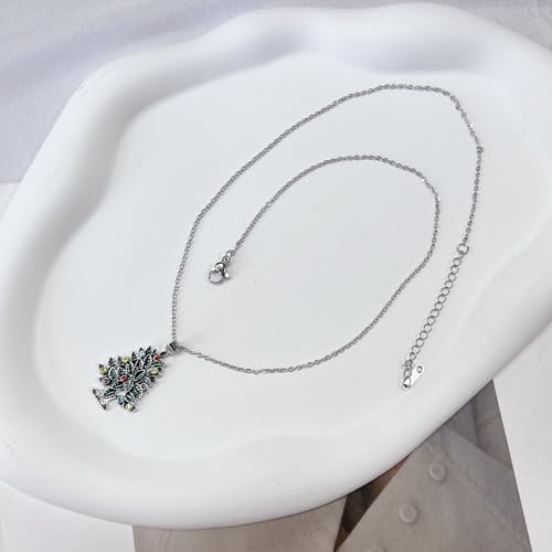 Simple Christmas Tree Colorful Crystal Pendant Necklace for Women Cubic Zirconia Green Enamel Plant Silver Plated Adjustable Chain Charm Necklaces Xmas Party Holiday Festival Jewelry Accessories Gift