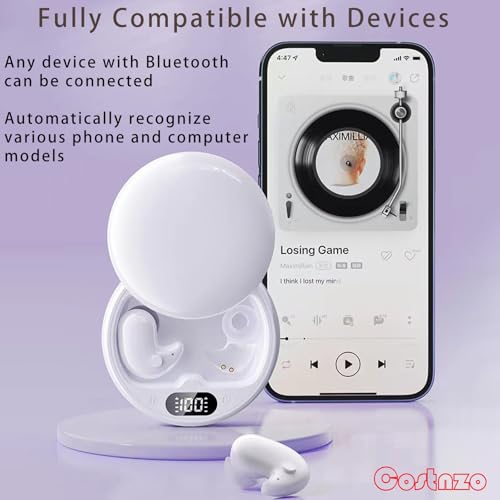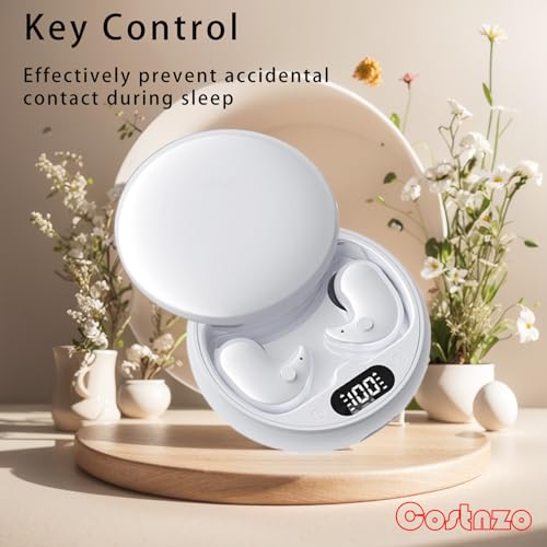Sleep Earbuds,Sleep Wireless Earbuds,Sleep Mode Wireless Headphones with Digital Display,Mini Earplugs Side Sleep Comfortable Bluetooth Earphones (Pearl White)