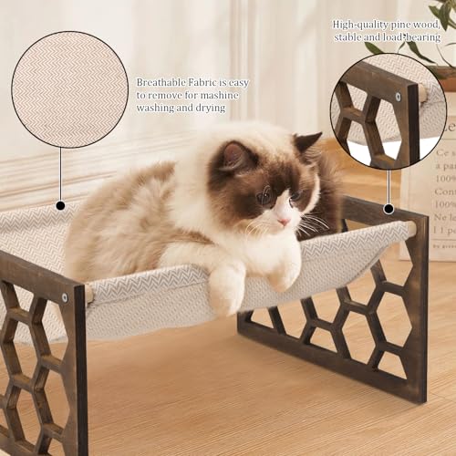 Small Dog Cat Bed Wood Frame Bed Side Large Cat Hammocks Soft Breathable Indoor Outdoor Elevated Cat Cots Furniture Brown Pet Bed Puppy Bed for All Seasons