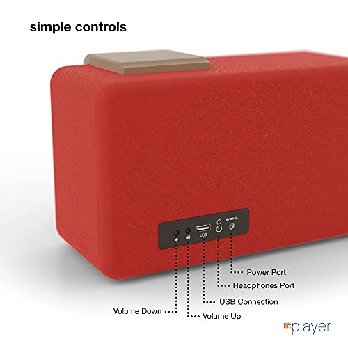 SMPL One-Touch Music Player, Audiobooks + MP3, Quality-Sound, Durable Wooden Encloser with Retro Look, 4GB USB with 40 Nostalgic Hits Included, Live Technical Support (Red, Music Player)