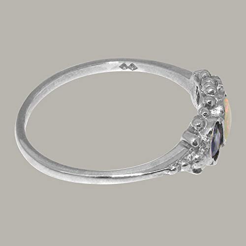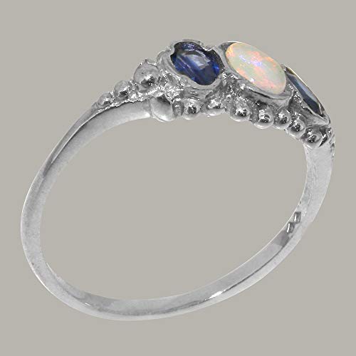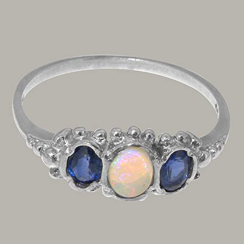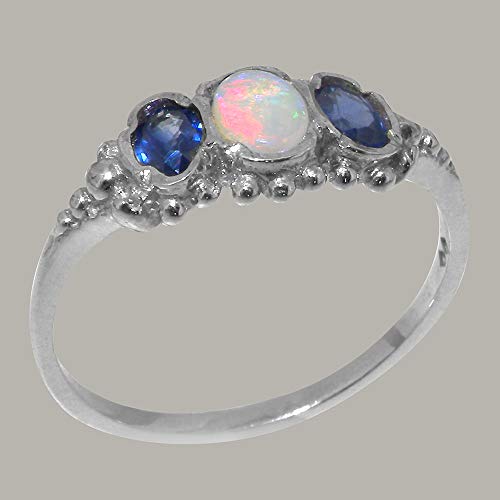 This Stunning Trilogy ring has been set with one 5x4mm (0.20″x0.16″ inches) Colorful Opal & two 4x3mm (0.16″x0.12″ inches) Beautiful Australian Saphires. The Bright Color of these Australian Saphires highlight the colors within this Unique Opal. The Gems have been hand set in this Vintage Style Solid 14K white gold Trilogy setting which is very comfortable and easy to wear.
