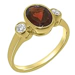 A modern style trilogy ring with its simple yet beautiful geometrical details. The center stone is approx 8x6mm oval and the two outer stones are approx 2.5mm round. We use two Cubic Zirconia and a large Natural Garnet which have been carefully chosen for this ring by expert jewelers to ensure a good fit. Here, the beauty of the Garnets fiery vibrant red color like a leaf in autumn is enhanced by the two Cubic Zirconia that catch the light and make the center stone shine even more. This simple design and combination lets people appreciate the full beauty of the center stone.