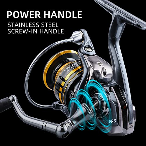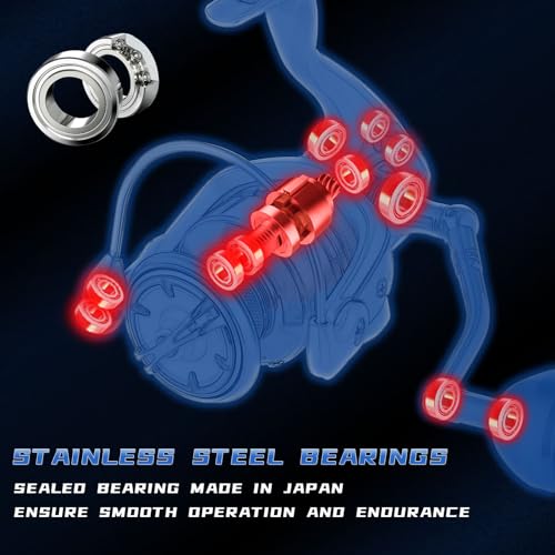 Unique Designed Spools – The machined and anodized aluminum alloy spools increase chamfer design to reduce the friction of the fishing line and cast farther. The anti-skid groove design can effectively prevent the fishing line from slipping.The novel hollow out design makes spinning reel saltwater very delicate and beautiful