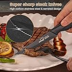 【Dishwasher Safe】This steak knives set for kitchen is easy to maintain. Dishwasher safe. Perfect for storage after washing and drying. The whole body of the knives set for kitchen is made of premium stainless steel material. The surface layer has a high-grade anti-rust coating, which will not rust as easily as other kitchen knife sets, and will not cause damage despite the high intensity impact of the dishwasher.