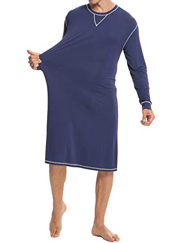 SWOMOG Men’s Nightshirt Long Sleeve Nightgown Soft Loose Sleepwear Lightweight Nightwear Comfy Henley Sleep Shirt S-XXL