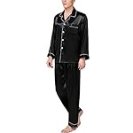 SWOMOG Mens Silk Satin Pajamas Long Sleeve Loungewear Two-piece Sleepwear Button-Down Pj Set
