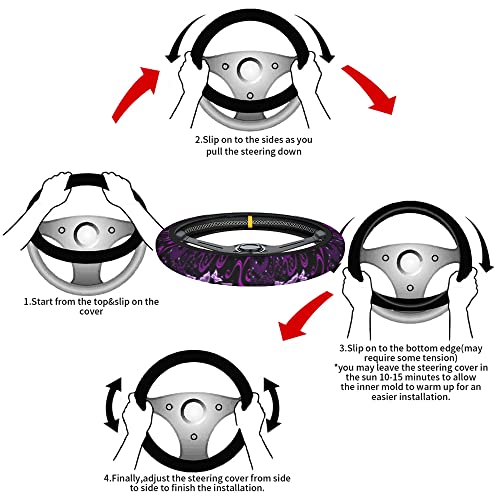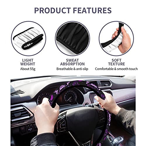 Swono Butterfly Purple Steering Wheel Cover for Men Women Abstract Purple Butterfly and Flower On The Black Universal 15 Inch Auto Neoprene Case Anti-Slip Car Wheel Protector