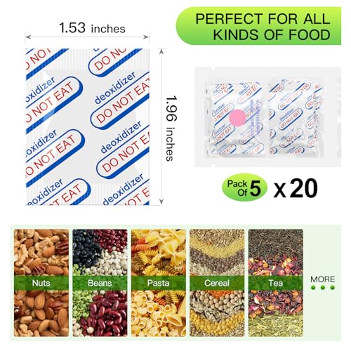 SYMYNELEC 400cc Oxygen Absorbers for Food Storage, 100 Count (20x Packs of 5), O2 Absorber for Long Term Food Storage & Survival Vacuum Mylar Bags Canning Dehydrated Airtight Container Freeze Dryer