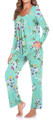 TAOHUADAO Women’s Fall Pajamas Set with Pockets Soft Pants with Long Sleeve Top Ladies Sleepwear