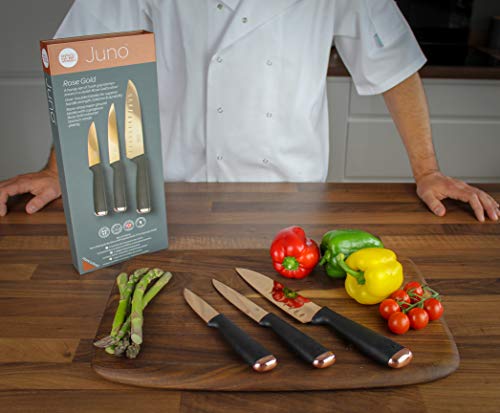 ✅ SUPERIOR QUALITY BLADE: The high quality, stainless steel blade is coated with a non-stick, increasing its hardness and corrosion resistance while giving it a unique matching coloured finish. Each Juno knife is chosen for a specific purpose. Collect them all to complete the set, giving you a fantastic matching collection. A unique design to suit contemporary dining to traditional farmhouse kitchens. A real talking point with family, friends and dinner guests.